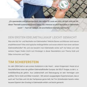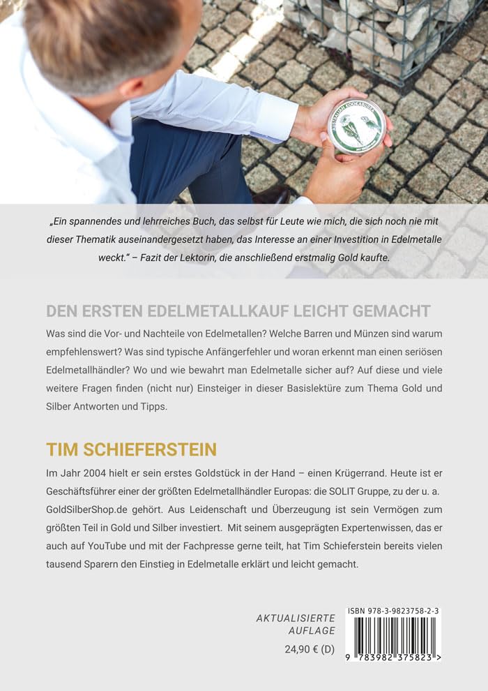 Die Basislektüre für Edelmetall-Einsteiger ist inhaltlich überarbeitet und aktualisiert worden. Doch auch in der aktualisierten Auflage ist das Ziel von Autor Tim Schieferstein gleich geblieben: Er möchte die Leser des Buches von unbedarften Anfängern zu fachkundigen Edelmetallliebhabern machen.