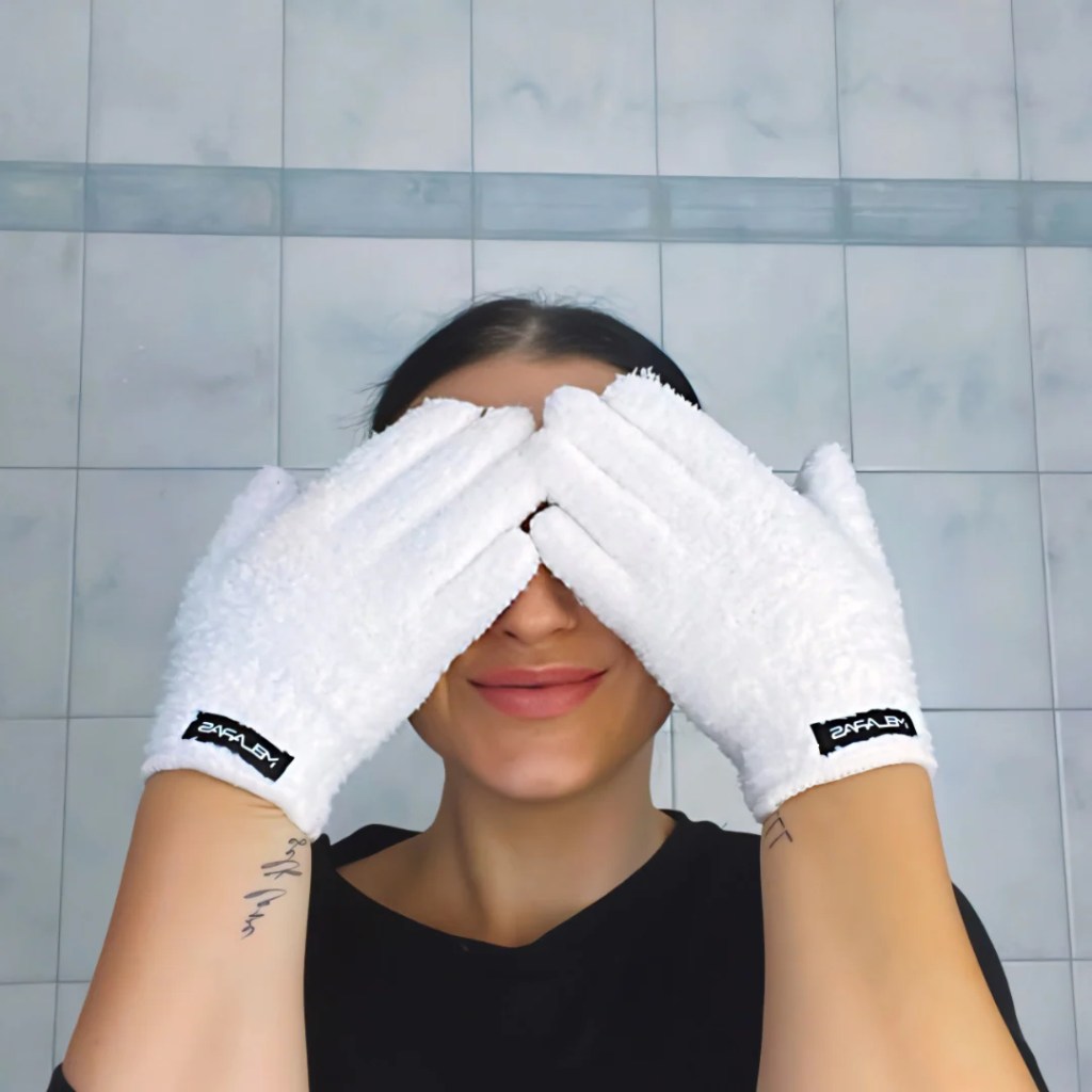 Nur mit warmem Wasser – kein Öl, keine Reinigungsprodukte notwendig. Ideal für sensible Haut.