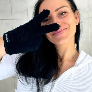 3. Sanft über die Haut: Kein Rubbeln! Die ultrafeinen Fasern lösen dein Make-up von selbst.